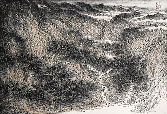古代囿于空间广度,画家所写之山局限在平生活动范围之内。李思训写海外山,董源写江南山,米元晖写南徐山,李唐写中州山,马远夏珪写钱塘山,黄子久写海虞山。在离开大别山之前,桂行创专图大别山。显名之后应邀四处写生,画他乡山水,依然采用写大别山的笔技墨法。可以说,桂行创是一位深深篆刻上大别山烙印的画家。
