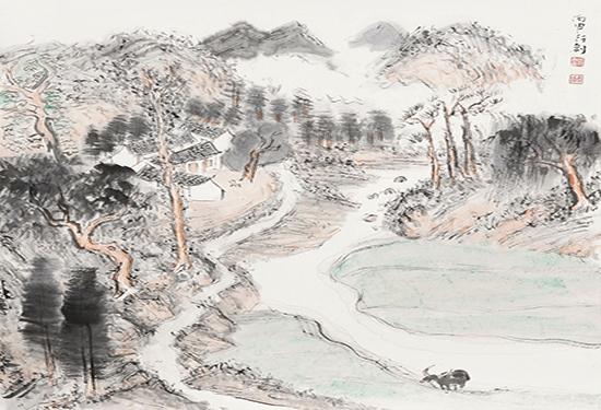 宋人郭熙《林泉高致》曰:“山水有可行者,有可望者,有可游者,有可居者。但可行可望,不如可居可游。”而董其昌认为:“可居则更胜矣,以其能令人起高隐之思也。”作为一个山水画家,桂行创承继郭熙和董其昌的观点,他的内心更喜欢那种充满人间烟火气和生活气息的山水画。或许,这与桂行创的早年经历息息相关。