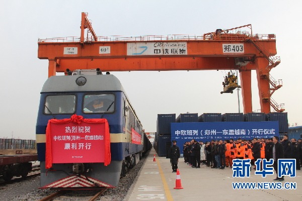 12月7日上午,中欧班列(郑州-东盟越南)国际货运线路正式开通,河南及周边地区的货物可以从郑州出发,沿着该线路一路向南,经广西凭祥口岸出境后抵达越南河内。
