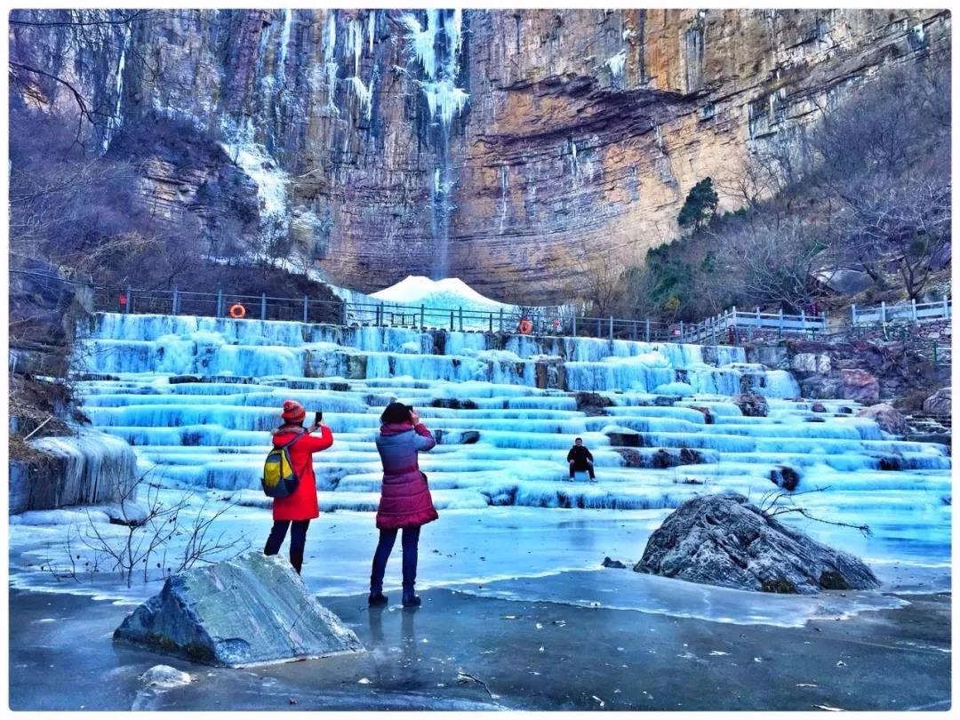 三三两两的游客,为冬日的八里沟增添了神秘的色彩,在尽享冬趣的同时,也会拍下一张照片留作念想!