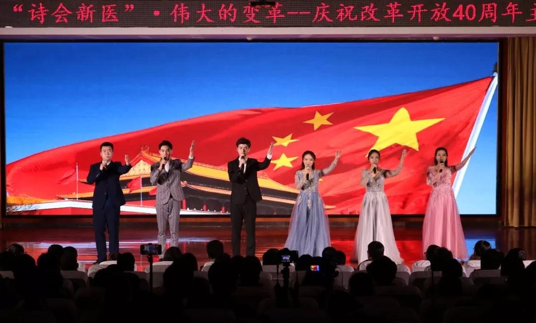 庆祝改革开放40周年,12月12日晚,新乡医学院第六届“诗会新医”•伟大的变革——庆祝改革开放40周年主题诗文吟诵会于该校上演。