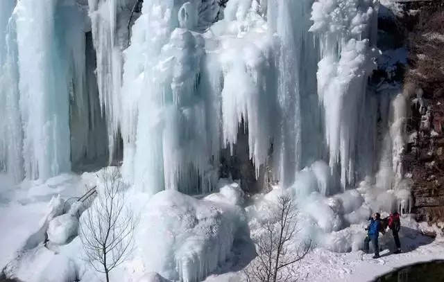 山间穿行,一幅幅鬼斧神工、巧夺天成的冰挂倒挂在悬崖的石峰中,和山间的小冰瀑遥相辉映,使人一下子好似置身在清幽的童话王国。如帘如柱,如梦如幻。