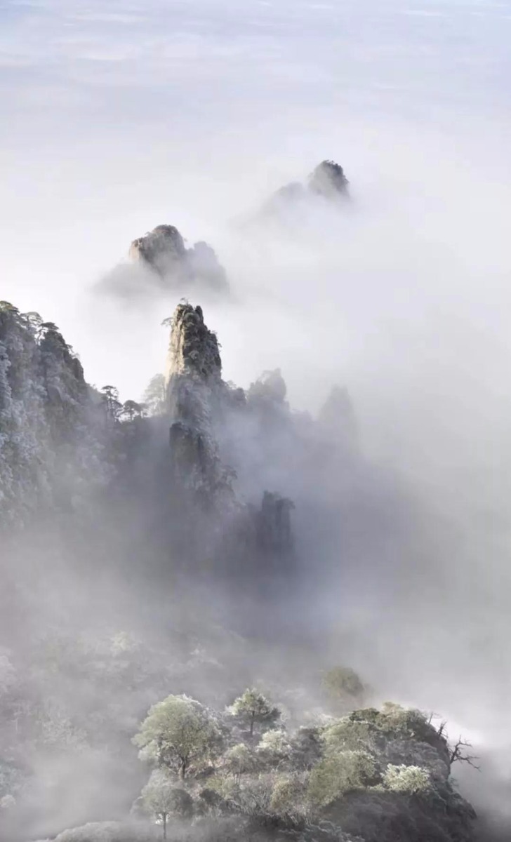 你有没有在大雪压松的时候,俯瞰荒野山川?在寂静萧然的人间看粉雕玉琢的大自然!所见皆黑白井然,虹枝虬木即是风景。