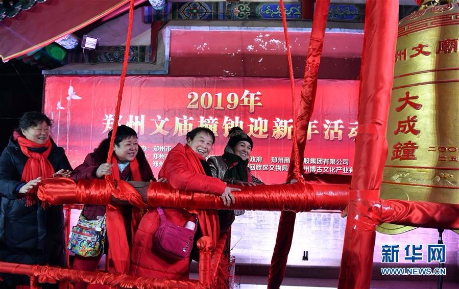钟声阵阵辞旧岁,豪情满满迎新年。2019年郑州文庙撞钟迎新年活动由郑州市政府主办,郑州市文物局,管城回族区委、区政府等承办,主题为“新时代·新商都·新篇章”。