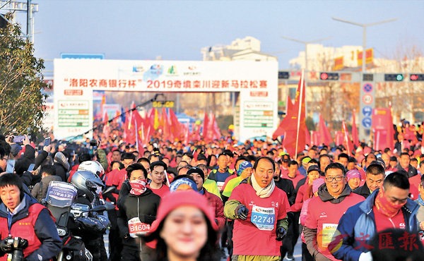 香港文报讯(记者 冯雷 河南报道)1月1日,2019奇境栾川迎新马拉松赛在河南省栾川县举办,射击世界冠军李金豹领跑,近五千名跑友用激情和速度体验不一样的马拉松盛会 (见图)。