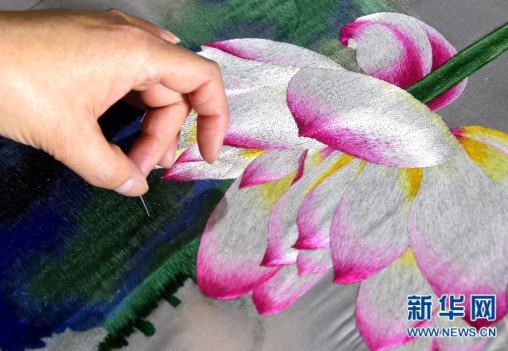 图片:绣娘在制作汴绣作品(新华社记者李安摄)