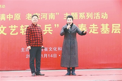 今年,河南省将继续全面开展“红色文艺轻骑兵”新春走基层活动。其中,省直文艺院团将组织20支“红色文艺轻骑兵”小分队,分赴兰考、淮阳、西华、潢川、商水、新蔡等14个县的20个贫困村进行慰问演出。我省艺术名家李树建、汪荃珍、王惠、贾文龙、申小梅、王惠、孟祥礼、李金枝、柏青、吴广林、杨帅学等将给群众带去经典剧目选段以及一些戏曲小品、综艺节目等演出,将给群众带来高质量的艺术享受。
