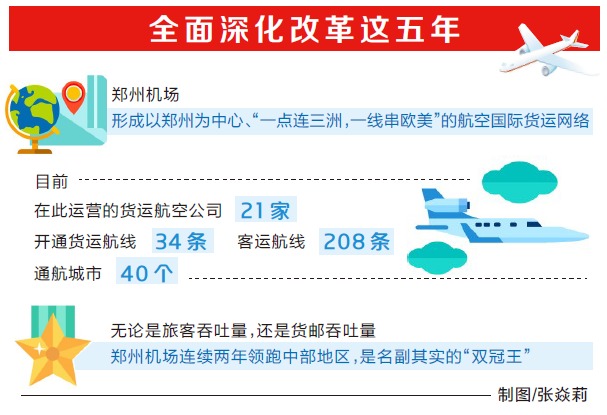 无论是旅客吞吐量,还是货邮吞吐量,郑州机场连续两年领跑中部地区,是名副其实的“双冠王”。中国民航局负责人评价说,郑州机场已初步崛起成为“空中丝绸之路”上新的航空货运枢纽、世界货运市场的重要平台、“一带一路”沿线的重要节点,成为中国内陆地区全方位对外开放的新高地。
