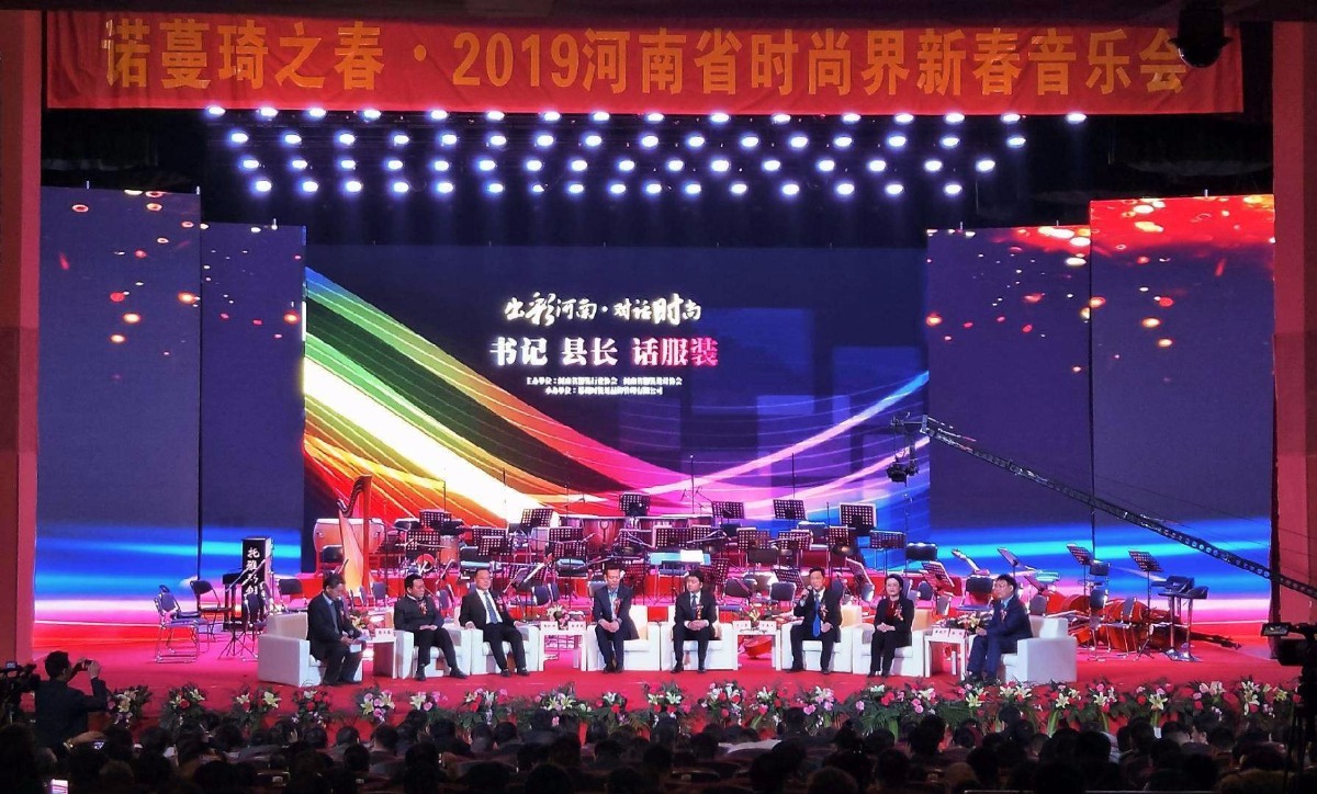 大公网讯(段晓燕)1月18日,出彩河南·对话时尚——书记县长话服装暨诺蔓琦之春· 2019河南省时尚界新春音乐会在郑州举行,河南省市有关部门领导、几十位书记县长走进行业、走进民众,与1300多名服装时尚届专家、先进模范和干部职工代表欢聚一堂,话服装论剑时尚、赏音乐欢度新春。