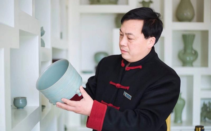王振峰说,他与汝瓷结缘得益于他的父亲王一沙。王一沙是汝瓷原产地汝州汝瓷界的名人,曾在汝州市工艺美术汝瓷厂工作,专门从事汝官窑技术研究、开发与传承近30年。