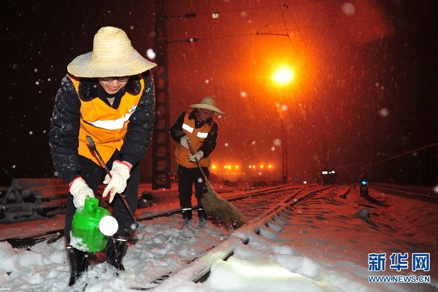 雪夜扫雪(源自新华网)