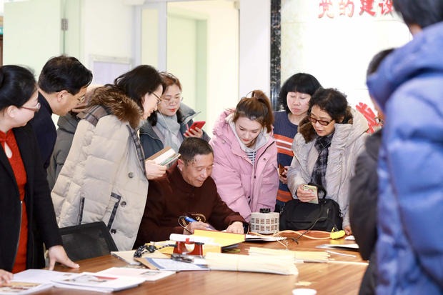 1月31日,农历腊月廿六,郑州市祭城路街道正光街社区组织开展“非遗进社区过大年”活动,63岁非遗传承人陈振强向辖区30余名居民介绍非遗项目麦秆画的历史文化、工艺造型等内容,居民现场共同体验麦秆画制作乐趣,喜迎新春到来。 图为陈振强向社区居民展示麦秆画制作工艺。
