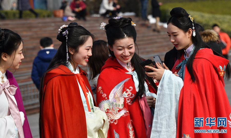 2月17日,来自河南各地的70多位古装爱好者相聚在美丽的郑州郑东新区如意湖畔,一起猜灯谜、点灯笼、做投壶等传统游戏,向市民介绍传统礼仪。