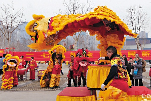 郑州开启年度民间舞狮展演暨狮王争霸邀请赛,多达1,000多名基层群众身着缤纷靓丽的演出服,敲锣打鼓欢庆佳节。最引人注目的「中原第一狮」--河南省巩义市小相村小相狮舞,是第二批国家级非物质文化遗产。几十架「雄狮」在近20米的高架上跳跃腾挪,引四周观众阵阵喝彩。■香港文汇报记者 刘蕊 郑州报道
