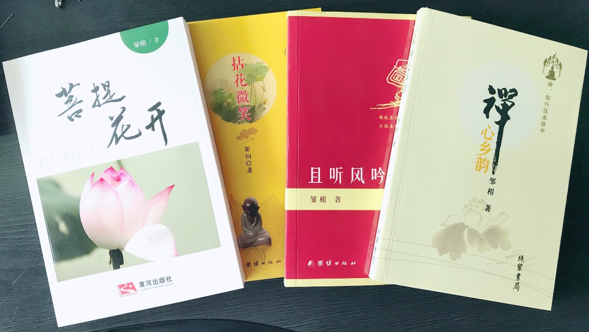 自1999年以来,邹相先后在海内外诸多报刊上发表各类文学作品数千篇,新闻作品数百篇,出版过《风雨花》、《邹相作品专辑》、《禅心乡韵》、《拈花微笑》、《菩提花开》、《且听风吟》、《素心若荷》等,并三次获郑州市文学艺术优秀成果奖。刚刚得知,他2018年出版的禅诗集《素心若荷》又获得了郑州市第二十届文学艺术优秀成果奖。其中,他的“禅心三部曲”被国家图书馆、中国现代文学馆、北京大学图书馆、中国人民大学图书馆等百余家国内知名图书馆永久收藏。其书法作品也被多家寺院、茶馆、会所、企业、书画展览馆、海外文化机构等收藏。