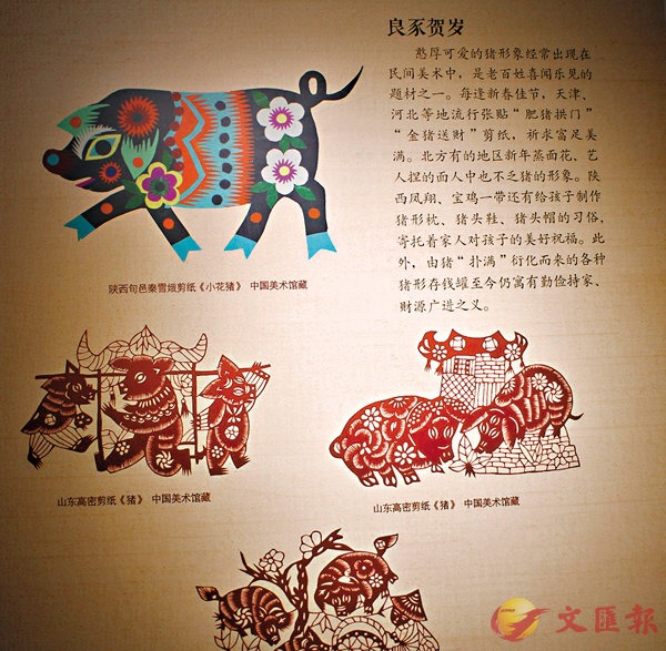 「金猪拱福-己亥新春生肖文物图片联展」正在河南博物院举行,直至本月二十日。展览由国家文物局指导,河南博物院主办,辽宁博物院、湖北博物院等多个省级博物院联展,由故宫博物院、中国美术馆等提供图片支持。历时两个多月的展览,每日吸引众多中外观众前来参观。抓住他们眼球的,不仅仅是简单几张猪的图片和简单的文字说明,而是中国传统文化中的生肖猪、中国猪、吉祥猪的深厚内涵。 文、摄:香港文汇报记者 刘蕊 河南报道