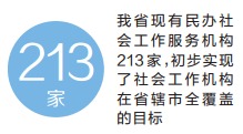 据了解,目前全省已累计投入资金1亿多元,用于购买社会工作服务、开展社会工作培训、支持社会工作发展。近年来,全省社会工作服务范围不断扩大,涉及儿童、青少年、老年人、残疾人、妇女家庭、社会救助、社区矫正、禁毒、医疗、“农村三留守人员”、心理健康服务等领域,社会工作和志愿服务在社会治理创新中的作用日益凸显。