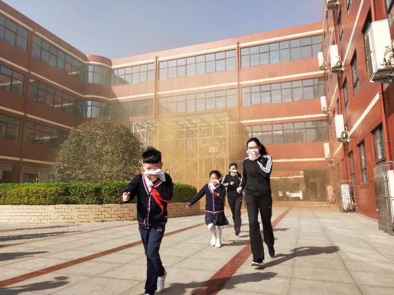 在启动仪式现场,郑东新区永平路小学师生代表进行了学校安全教育成果汇报展示。首先,永平路小学一二三年级师生进行的应急消防疏散演练拉开帷幕。师生们应急疏散环环相扣,训练有素,安全防护措施和逃生避险技能规范、熟练。