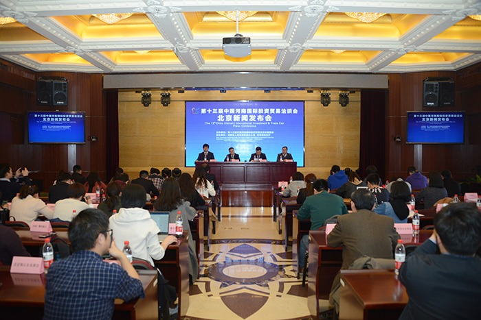 日前,第十三届中国河南国际投资贸易洽谈会组委会在北京召开新闻发布会。组委会办公室副主任、河南省商务厅副厅长孙敬林作新闻发布,商务部投资促进事务局副局长李勇、中国人民对外友好协会办公厅主任张杨斌分别答记者问。