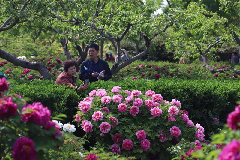 粉色以粉中冠、白色以景玉较为出名,其中,牡丹花名品有凌花湛露、银红巧对、仙女争春、玉面桃花等。