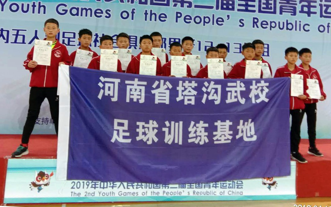 大公网讯(楚长城)4月6日至13日,2019年中华人民共和国第二届青年运动会室内五人制足球社会俱乐部男子12-13岁组比赛在内蒙古鄂尔多斯举行,河南省青少年塔沟少林足球训练基地(下简称“塔沟足球基地”)U13男队在比赛中获得第四名。
