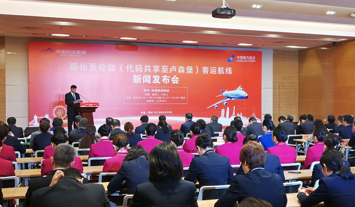 大公网讯(楚长城)4月29日,南航河南公司与河南机场集团在郑州机场联合召开新闻发布会,宣布南方航空将于2019年6月25日开通郑州至伦敦洲际定期客运往返航线,旅客可通过希思罗机场中转往返卢森堡。