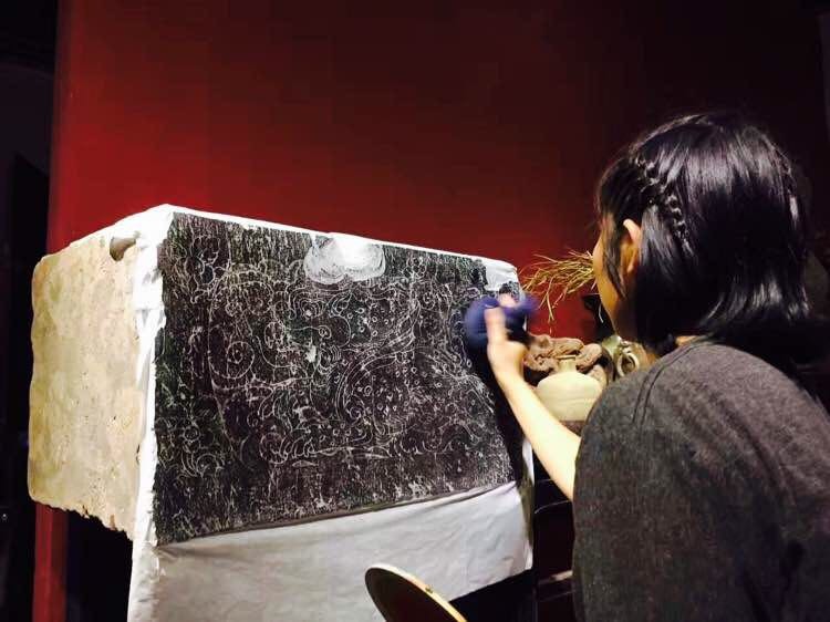 作为河南省非遗“新生代”传承人群体中的代表性人物——杨慧女士,自十二岁学习传拓技艺以来,不满三十二岁的她已积累了近二十年的金石传拓经验。深厚的家学积淀为她夯实了坚实的技艺基础;大学的美术专业为她开拓了广阔的文化视野;而后她又分别于2007年与2009年向洛阳兴业堂堂主唐国强先生与“大国工匠”李仁清老师学习了墓志铭乌金拓技艺与高浮雕传拓技艺,实现了传拓技艺的传承。杨慧女士自2010年起担任中原金石文化研究会常务理事与洛阳龙门石窟博物馆顾问以来,她带领着自己首创的“沄鹤堂”工作室,致力于金石文化研究、传拓技艺传承与非物质文化遗产产业开发保护。主要传拓经历遍及河南省考古研究院、郑州市文物局、登封市文物局、巩义石窟寺、新密市文物管理所、荥阳市文博中心、华夏石刻艺术研究院等多家省市县级文物管理机构和博物馆。丰富的传拓经历与精湛的技艺使得杨慧女士于2017年被授予河南省第四批非物质文化遗产——金石传拓项目传承人的荣誉,其工作室“沄鹤堂”被授予郑大国际交流AIESEC探索中国项目的体验基地与河南省科普教育示范基地的双向基地称号。