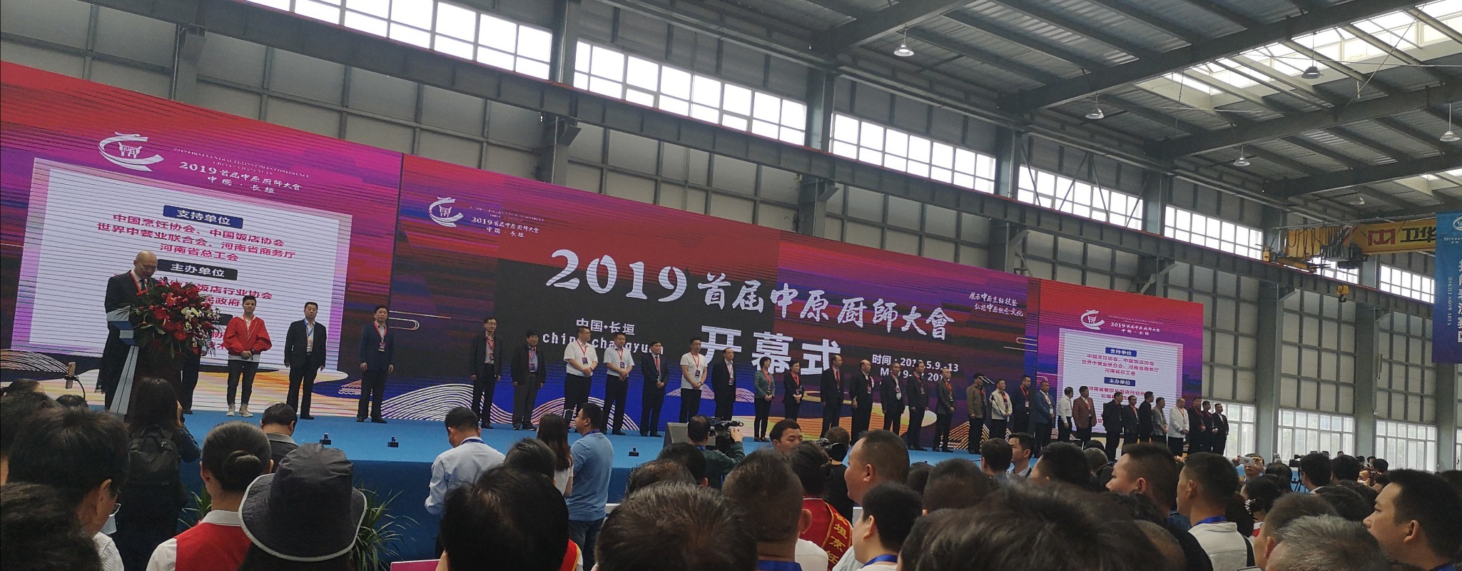 5月10日上午10:10在长垣国际会展中心举行2019首届中原(长垣)厨师大会开幕式。大会由长垣县委副书记张彤主持,参加开幕式的领导和嘉宾有中共河南省委原常委、秘书长李柏拴同志;河南省人民政府原副省长贾连朝同志;河南省商务厅助理巡视员王峰同志;河南省总工会副主席梅宪宾同志;中国烹饪协会副会长高秉义同志;中国饭店协会副会长平安稳同志;河南省餐饮与饭店行业协会会长张海林同志;长垣县委副书记、县长赵军伟同志,县人大常委会主任夏治中同志;县政协委员会主席鲁玉魁同志;长垣烹饪职业技术学院董事长范国栋同志等。另外,参加本次开幕式的嘉宾还有山西、湖北、河北、安徽、陕西、山东、江苏等省餐饮协会,河南18个省辖市及商城县、光山县代表团。