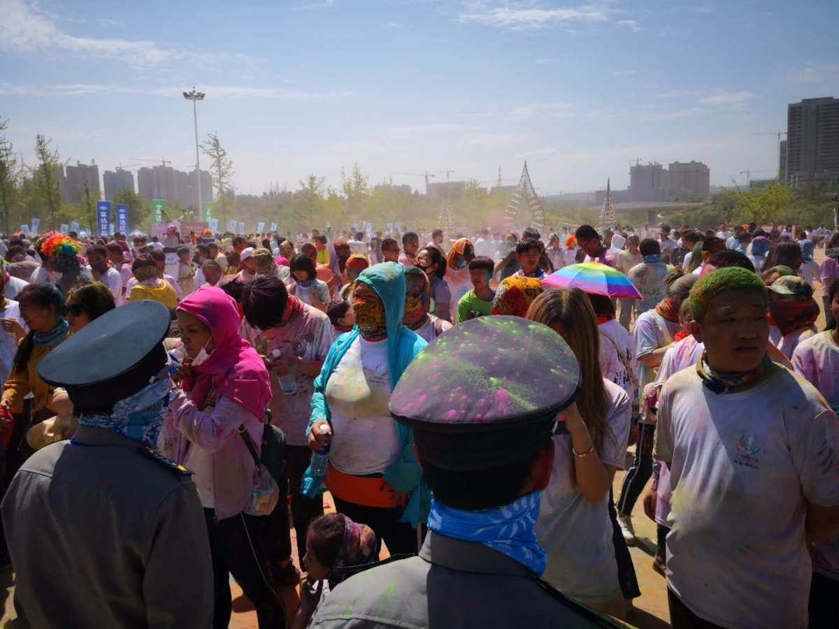 随着一声鸣枪发令,参与者在漫天“彩烟”中激情开跑。参与者从明珠广场出发,经金谷东路、中心大道、甘棠南路、伯阳路、迎宾大道非机动车道,再回到明珠广场,总长约5公里。全程设有5个彩粉站,每个站点都准备有各种小奖品,奖品种类繁多,还有国内梧桐树、光音、在路上胡子乐队现场助兴。