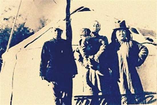 上世纪30年代范长江(左一)西北行期间,与当地群众合影