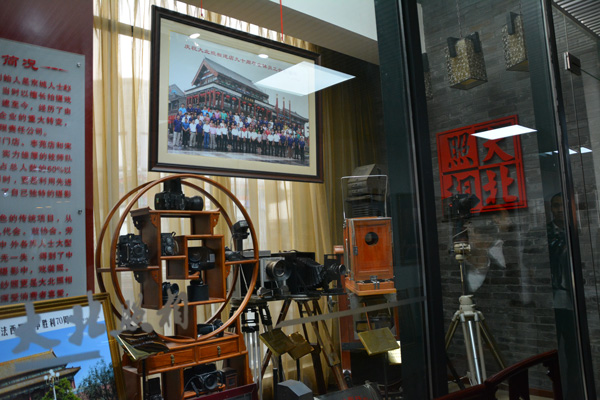 大北照相馆前门店二楼,几架老式转机和几部不同年代的相机就陈列于此。透过玻璃窗,从中可以看到,伴随着历史的进步,照相技术的迭代,以及这家创始于1921年的照相馆大致的发展历程。(李晓蓉摄)