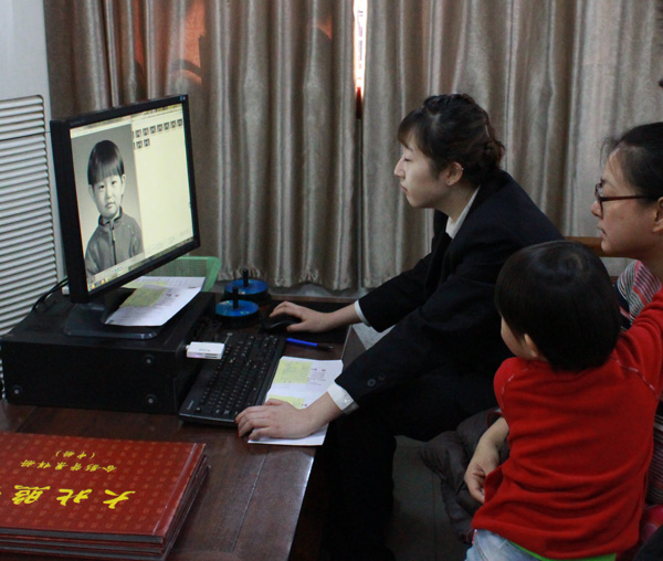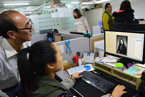 照片的后期处理,大都交给年轻人来做。(李晓蓉摄)