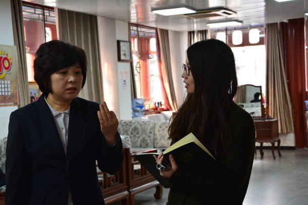 大北照相馆总经理汪东儒向大公记者介绍大北历史及现在发展情况。(李晓蓉摄)