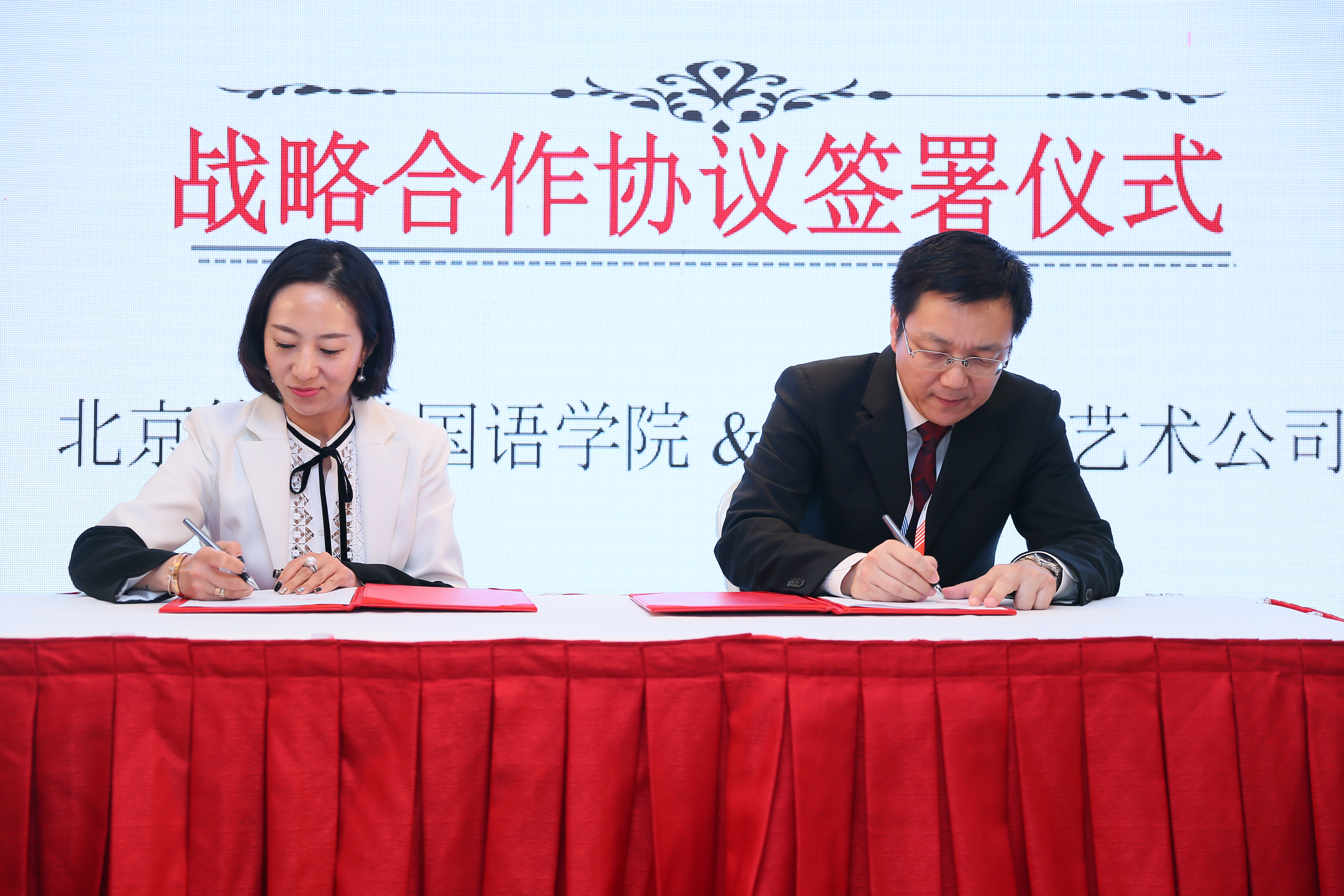 北京第二外国语学院分别与北京文投国际控股有限公司、华谊兄弟艺术公司签订战略合作备忘录,推动校企合作与人才培养创新