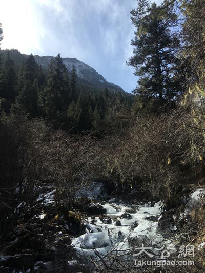 这里最妙的显然是在大自然最不愿意和人类分享的时节。山谷之间磬磬的溪水敲打黑色石块,形态各异的石块则被冰雪覆盖,并不是那种落在东北不分层次绵白的雪,而是树根下星星点点的雪块,过度到包裹黑色石块的冰晶,时缓时疾的水流扫过,冰晶突然缺了一个小角,紧接着这原来黝黑色与水晶晶莹的视觉对比便化成水滴。无论是谁,但凡静静在一旁看个几秒钟,想必马上驱散几分人间烦恼和怯懦。