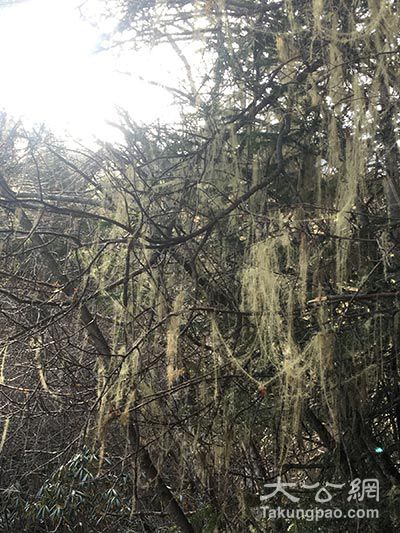 玛嘉沟冬季冰石相容的溪水奇,岸上的苔藓景观更是让人迷得出神。经过一片和松木交错生长的的藓科植物时我一度驻足,这片向下垂挂的绿意绝没有垂柳枝叶般粗犷,而是微微柔柔散散慢慢,透过阳光,便织成了就连这世上手艺最巧的艺人也无法编织的锦缎,而这种渐黄渐绿的颜色,更是我们人类所无法调和出来的。