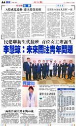 民建联主席李慧琼表示,民建联未来会做好政策研究和社会服务工作、加强团结本港社会各界,以及支持特区政府依法施政。多位政界人士亦坦言,本港不能再浪费时间在政治争拗方面,应该把握机会,在国家支持下寻求发展机会,又希望反对派不要再“拉布”,让立法会能够为市民做实事。2015-07-25 -