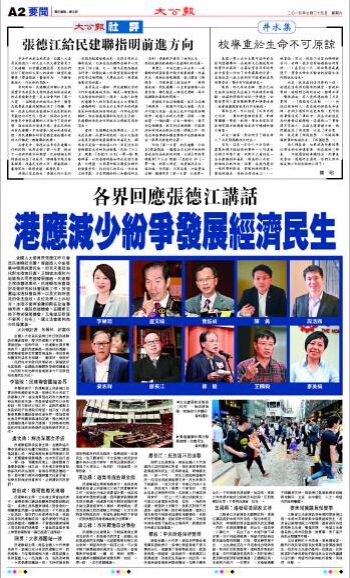 各界回应张德江讲话:港应减少纷争发展经济民生