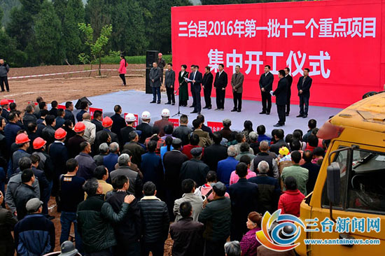 【三台新闻网简讯】3月28日,全县12个重点项目集中开工仪式在景福镇举行。县委书记赵迎春、县人大常委会主任李蜀光、县政协主席苏才华等县四套班子领导出席开工仪式。县委副书记、组织部长刘玉华主持开工仪式。
