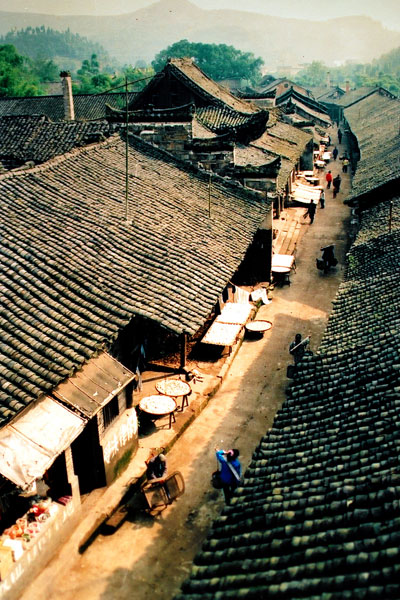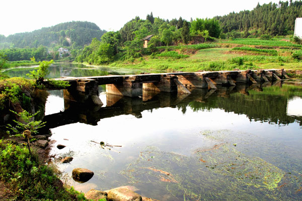 郪江镇位于三台县南部,距县城45公里。在春秋战国时为诸侯国郪国王城所在地。西汉高祖六年(公元前201年)设置郪县,三国蜀汉时期设置东广汉郡,均以此地为治所。郪江历史悠久,文化积淀丰厚,现存有帝主宫、王爷庙、千佛寺摩崖造像、郪王城、天台书院等珍贵文物遗存,还有明清古街,数十棵巨大的黄桷树,古戏楼,古驿道。镇外横跨郪江的古石桥九龙桥,始建于清乾隆年间(公元1736年-1795年),桥以九条高浮雕的龙为墩、20块相并的长方形平整条石为梁。九条龙形态各异,逆水而卧,造型生动,工艺精湛。1992年,郪江镇被公布为四川省历史文化名镇。