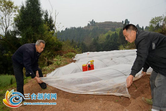 【三台新闻网消息】“只要气温回升,毛山桐种籽十来天就会发芽、定根。”4月5日,在三台县鲁班镇三合村三组,村民肖勇冒着毛毛细雨播撒毛山桐种籽。细土覆盖、喷洒消毒液、覆上薄膜,承载着村民致富希望的种籽在泥土中静静地孕育着。三合村是鲁班镇6个贫困村之一,是典型的旱山村,村民的生活生产用水基本上靠天,加之交通、水利等基础设施落后、无主导产业制约等因素,2014年村民人均收入仅4800余元。全村精准识别贫困户80户、贫困人口255人。“以前扶贫资金、扶贫项目都会向村子里倾斜,但贫困的现状扔没有得到改变。”该村主任王和龙告诉笔者,去年以来,镇党委、政府将该村纳入全镇贫困村 “摘帽”规划,探索出贫困村贫困户脱贫攻坚利益联结产业模式,因地制宜做加法,群众收入稳步增长。