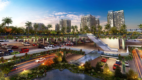 据悉,为了实现没有车辆穿行带来的噪音和污染,森林城市项目采用先进的分层立体城市规划理念,全城地面都是公园,地下两层为道路、立交和停车空间。其垂直绿化设计,全城搭建垂直绿墙、空中花园和屋顶花园系统,形成多维度立体绿化系统,具有降低能耗、净化空气、涵养雨水、减弱噪音等作用。