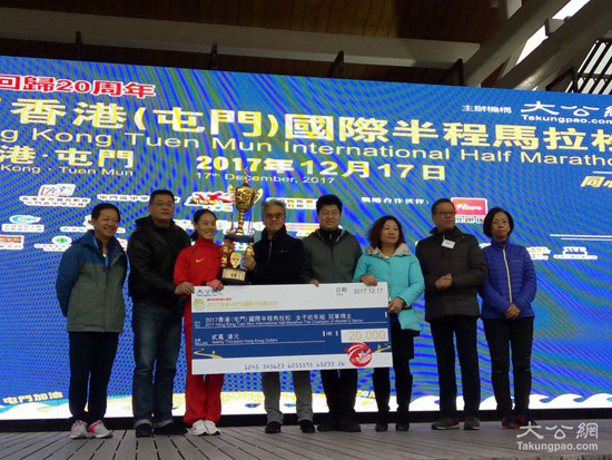 金铭铭以1小时17分42秒的成绩一举夺得本次赛事女子壮年组冠军。她表示为庆祝香港回归20周年来到屯门参赛,让她感到这项赛事有特殊的意义。