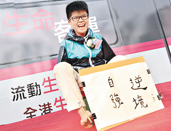缺少一雙用來鼓掌的手,楊小芳就用雙腳和自己的努力,獲得來自他人的真摯掌聲,生命同樣過得精彩。“縱然外表不健全,但擁有健康的身體已經很滿足。上天既然給予我第二次人生,我便有使命要做更多有意義的事。”楊小芳說,“我的成長經歷和別人不同,希望能通過自己的經歷去影響和幫助身邊的青少年。我想同和我有相似經歷的人或是那些生活不盡如人意的朋友講,無論遇到什麼困難,不要抱怨命運不公,而是要樂觀積極面對,千萬不能逃避。第一步踏出去很難,但只要向前便是成功。”