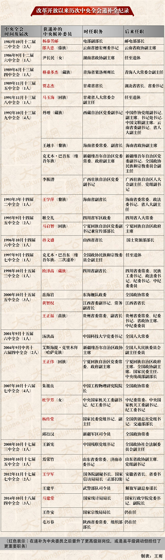 不过,从2004年王正伟之后,已经有十余年未再有少数民族官员递补。十八届五中全会将接续少数民族官员的“递补”史。