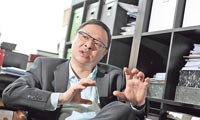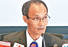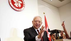 建制派议员廖长江,邓家彪和姚思荣接收大联盟支持政改的请愿信。