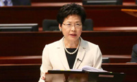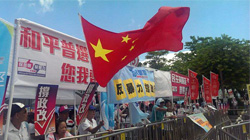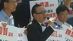 支持政改的团体在立法会外为政改通过发声,表达广大市民支持政改的心愿。