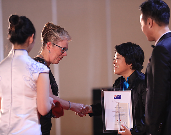 澳大利亚驻华大使安斯捷为“特别荣誉大使”胡妍妍、“荣誉友谊大使” 于和伟、“荣誉文化大使”方力钧、“荣誉美食﹠葡萄酒大使”李东田、“荣誉教育大使”程向君、“荣誉传播大使”李路、“荣誉体育大使”杨凌、“荣誉艺术大使”王功新颁发奖项。