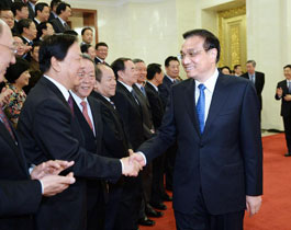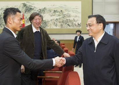 11月20日,国务院总理李克强在杭州会见出席首届世界互联网大会的中外代表并同他们座谈。