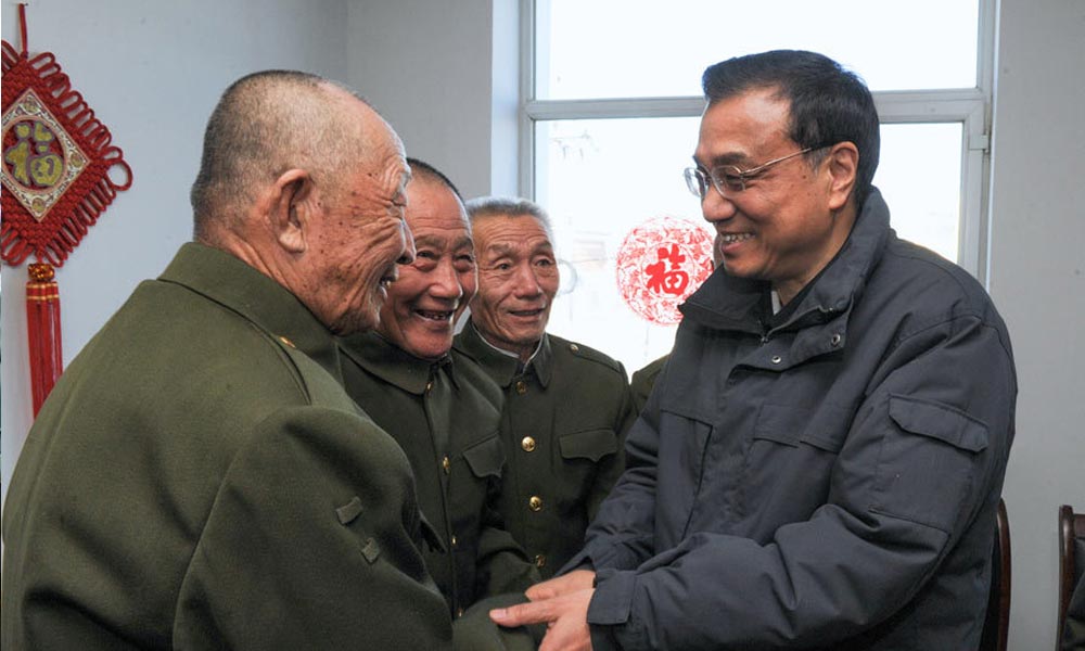 2月4日,李克强来到内蒙古兴安盟光荣院看望老战士。